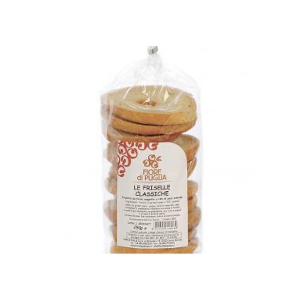 Tai klasikinė Apulijos frisa duona, pagaminta tik iš kruopščiai atrinktų, neapdorotų žaliavų, natūrali ir be konservantu. Friselle – tradicinis Pietų Italijos produktas, galintis lengvai tapti tikru gardėsiu gurmano gomuriui, viskas ko reikia tai keli šlakeliai ypač tyro alyvuogių aliejaus, žiupsnelio druskos, vyšninių pamidoriukų bei šviežio mozzarella sūrio ir vuolia, gardus bei paprastas užkandis ant jūsų stalo!