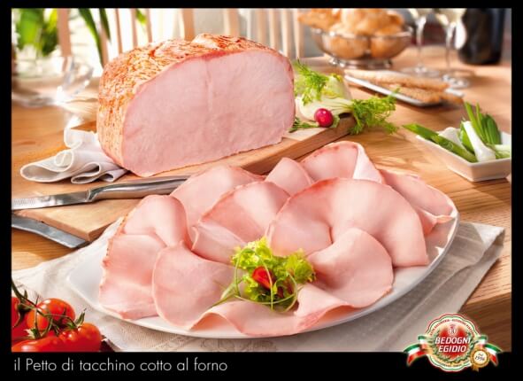 Itališko kalakuto krūtinėlė, druska, cukrus (dextrozė, sacharozė), naturalūs skonio priedai, tirštiklis: karageninas, antioksidantai: natrio askorbatas, natrio nitritas.