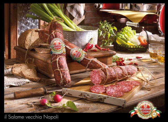 Salame Napoli – tai viena iš populiariausių itališkų dešrų, kilusi iš legendomis apipinto Napoli miesto. Pagaminta išimtinai tik iš aukščiausios kokybės itališkos, rankomis kapotos kiaulienos, pasūdoma su druska ir pipirais bei parūkoma ir brandinama bent 30 dienų, kas suteikia jai išskirtinį, visame pasaulyje vertinamą skonį. Ši dešra yra mėgstantiems stiprius ir pikantiškus skonius.